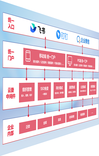 对协作平台提供支持服务,,,支持企业应用与协作平台对接,,,包含组织同步、、、、消息集成、、、待办集成等。。。。支持目前主流的协作平台:钉钉、、、、企微和飞书。。
